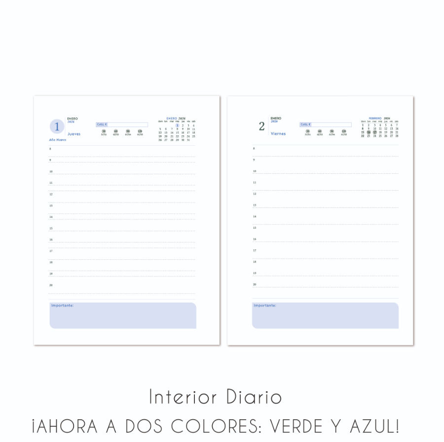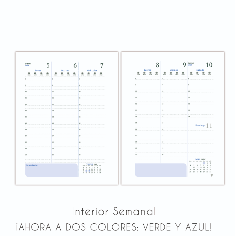 - INTERIOR SEMANAL O DIARIO ¡AHORA A DOS COLORES: VERDE Y AZUL!