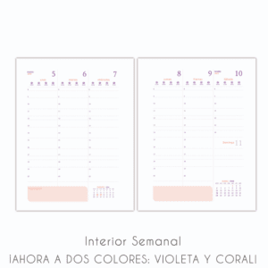 - INTERIOR SEMANAL O DIARIO ¡AHORA A DOS COLORES: VIOLETA Y CORAL!