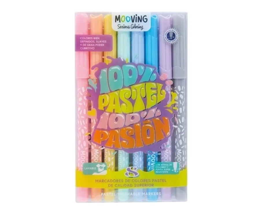 Descubre los Marcadores Mooving 100% Pastel 100% Pasión, un set de 8 marcadores que transformará tus proyectos creativos. Cada marcador cuenta con una punta redonda que permite un grosor de trazo medio, ideal para crear detalles precisos en tus manualidades y dibujos. Su tinta a base de agua no solo es vibrante y duradera, sino que también se aplica con facilidad y se limpia sin complicaciones, lo que los convierte en la opción perfecta para artistas de todas las edades. Fabricados con un cuerpo de plástico resistente, estos marcadores son nuevos y vienen en un práctico envase tipo blíster, asegurando que cada color esté siempre a tu alcance. ¡Deja volar tu imaginación y dale vida a tus ideas con los colores suaves y encantadores de este set!