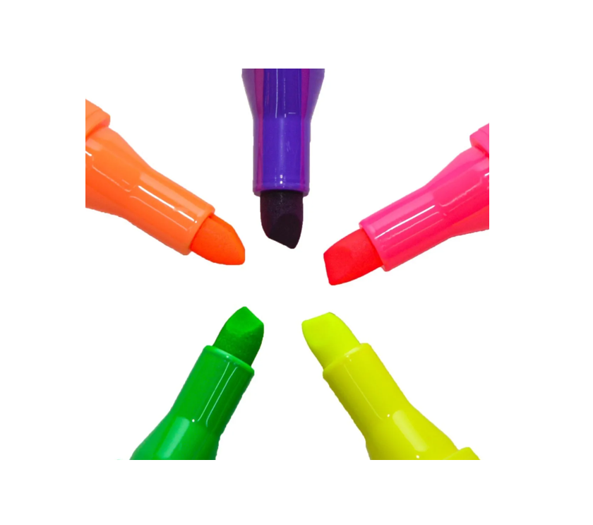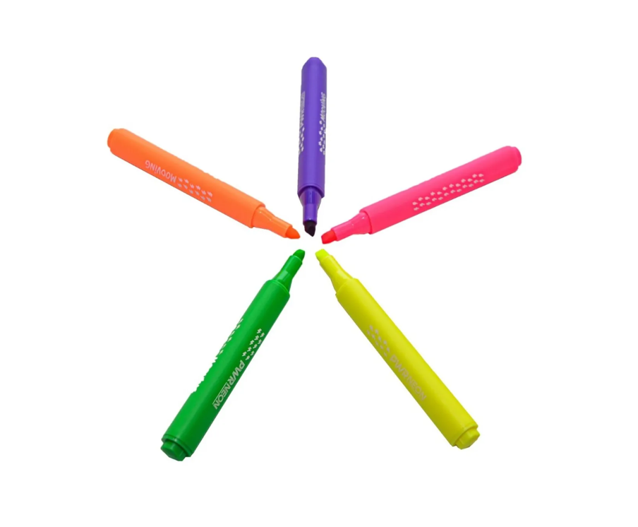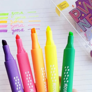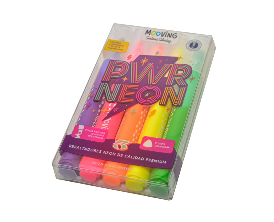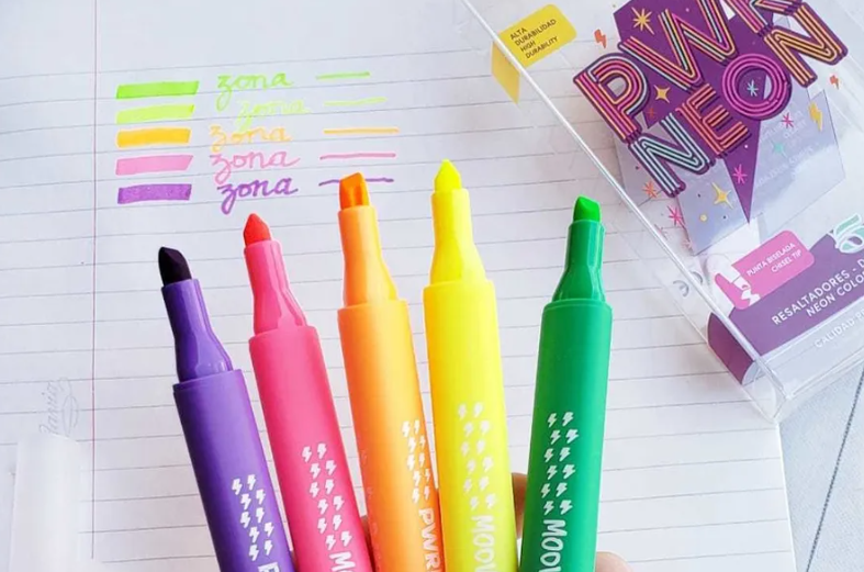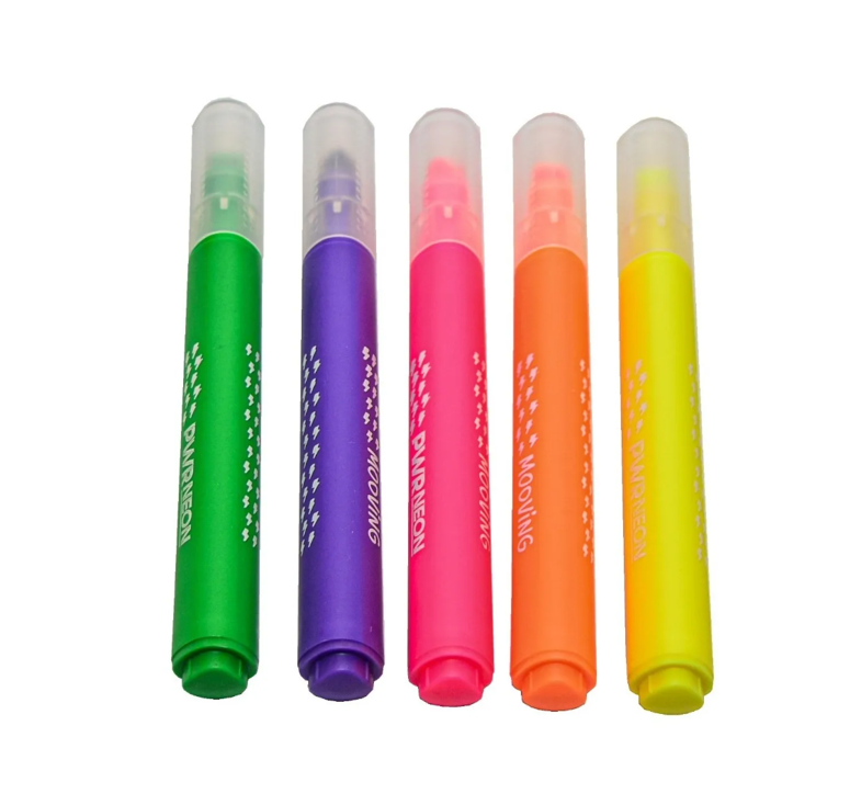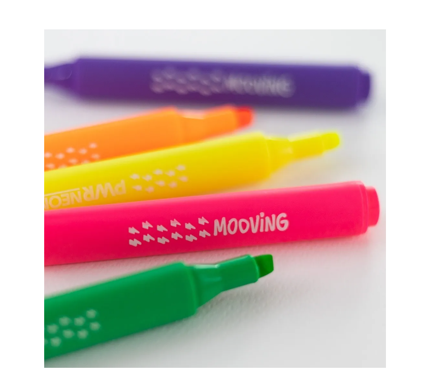 Mooving Resaltadores en colores neón vibrantes, ideales para resaltar textos y realizar dibujos creativos. Su tinta es de secado rápido y resistente al agua, lo que permite una escritura fluida y sin manchas. El diseño ergonómico de los resaltadores proporciona un agarre cómodo para largas sesiones de uso. Perfectos para estudiantes, artistas y cualquier persona que desee añadir un toque de color a sus proyectos.